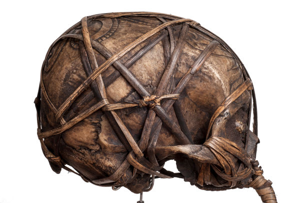 The trophy is simply amazing and has all the details one would expect in an item of this quality, the fantastic and typical carved motives, the eye sockets filled with shells and resin and all the rattan bindings to hang it.